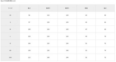 サイズ SS, S, M, L, O, XO, 2XO