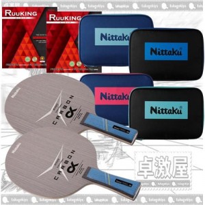 ■新定番カーボンラケットセット★超お買得! 50%OFF★戦型別初心者シェーク攻撃フライアットカーボンα+ルーキング+カラーロゴケース