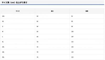 サイズ 2XS/XS/S/M/L/XL/2XL/3XL/4XL ※別寸対応は受け付けておりません。