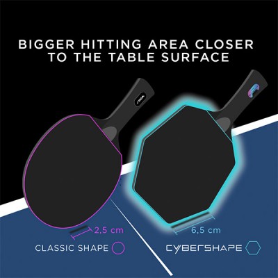バランスのとれた設計と最適なスイートスポットにより、卓球台に近い位置でのブロックショットから、距離を置いて打つループドライブまで、